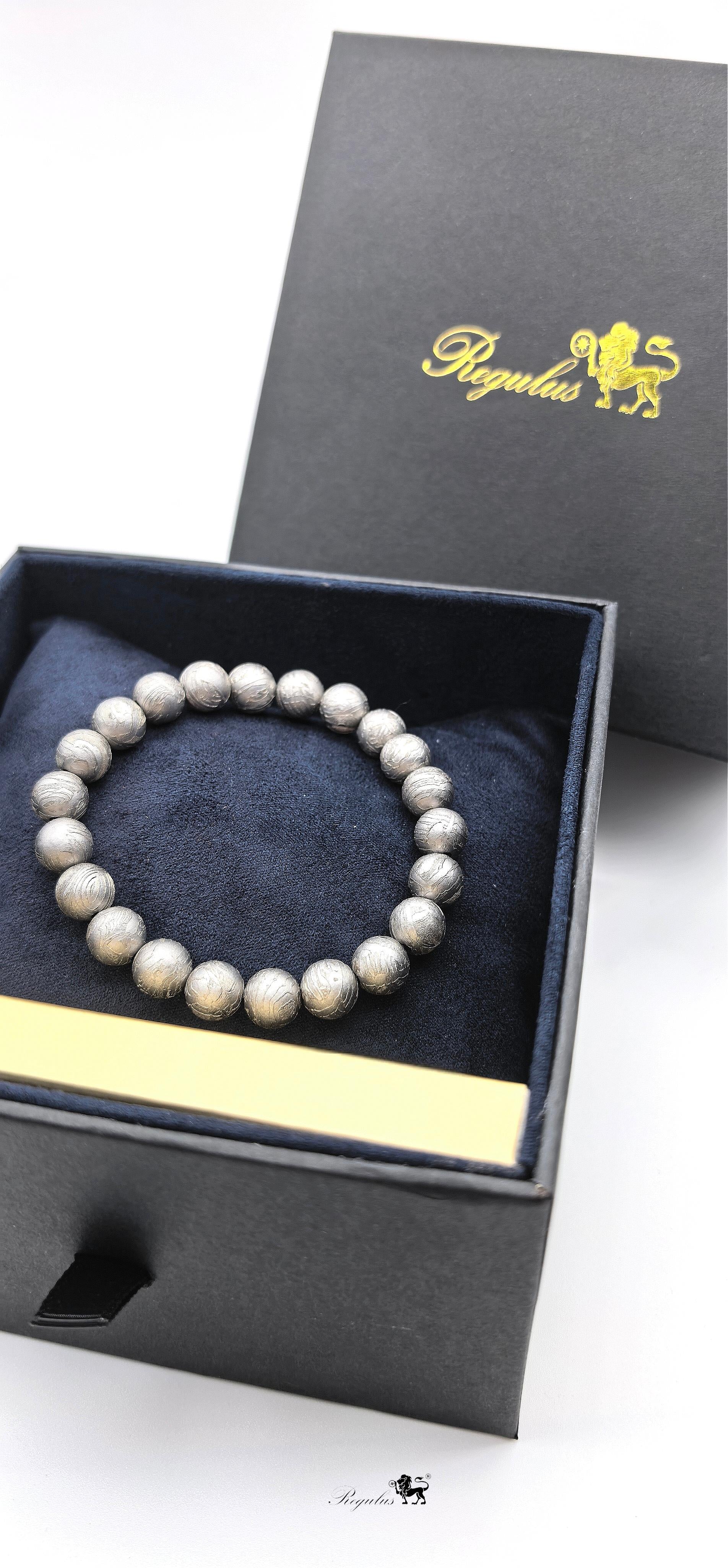 What flows between the wrists is not only jewelry, but also a frozen epic of the universe. Each bead in this iron meteorite bracelet originates from a chaotic nebula during the birth of the solar system 4.5 billion years ago. At that time, the hot fragments of celestial bodies wandered in the boundless deep space, undergoing billions of times of ultra-high temperature melting and cosmic ray carving, finally crossing the atmosphere and falling to Earth in a burning posture, becoming "interstellar messengers" that could be touched by human fingertips.